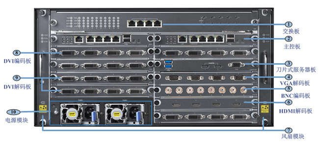 5U機箱(10個業(yè)務槽位)+交換板+雙主控板+觸屏面板+雙電源